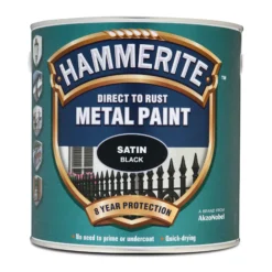 A brilliant Hammerite interior and exterior satinwood metal paint that is a great choice to give your home a refresh. Black is a versatile colour that will add a contemporary feel to your design. It can be applied on any iron surfaces to create a consistent finish. Use this metal paint to create an effortlessly satinwood finish with easy application and minimal cleanup. This 2.5L size will cover up to 12 m² on average. You can use a brush or roller to apply an even layer.