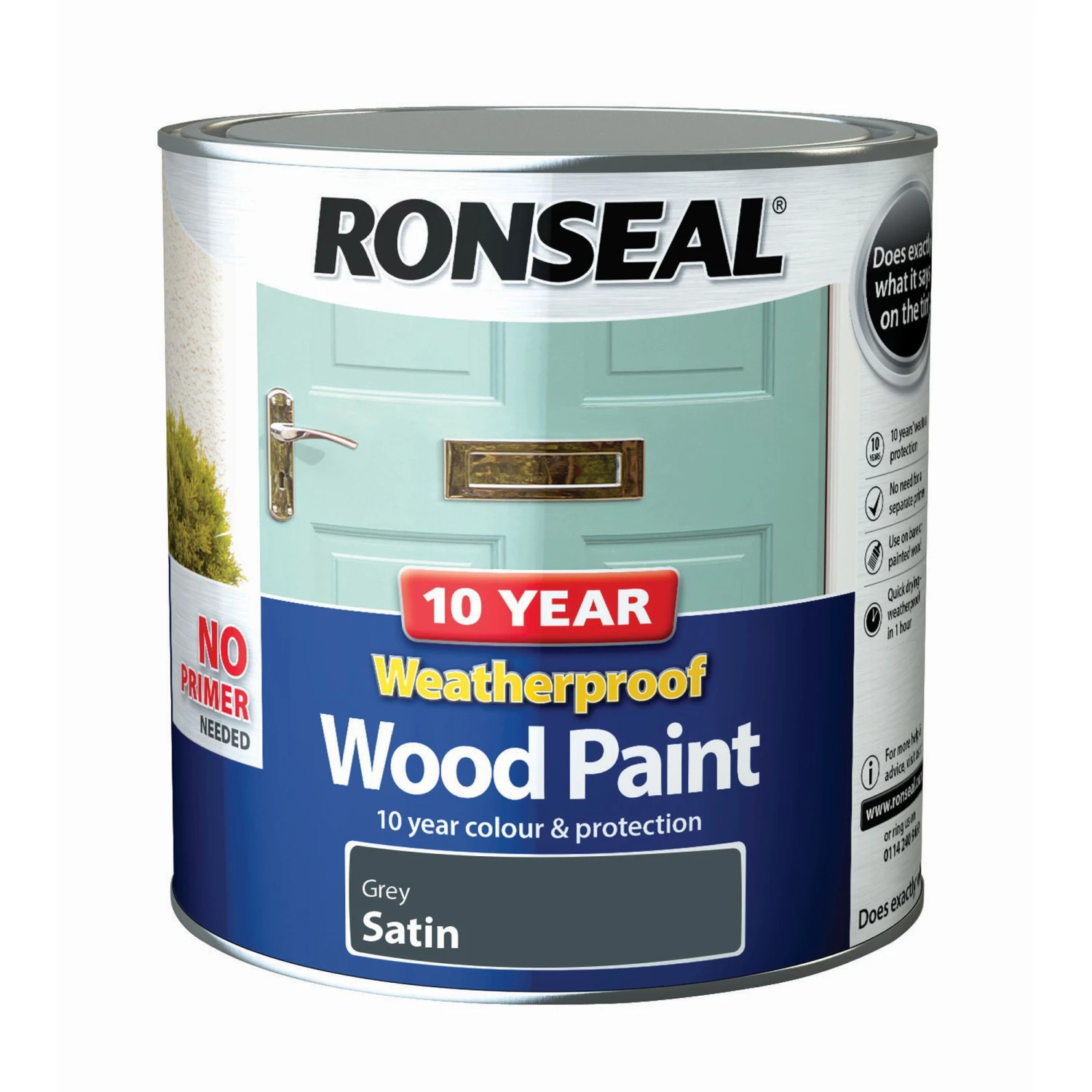 A reliable Ronseal exterior satinwood wood paint that is a great choice to give your home a refresh. Grey is a clean colour that will add a contemporary feel to your scheme. It can be applied on any wood surfaces to create a consistent finish. After application, this wood paint will accomplish a flawlessly satinwood surface that will look good as new for a long time. This 2.5L size will cover up to 21 m² on average, so you can buy exactly what you need to complete your decorating job. For the best outcome, apply with a brush. It will dry quickly between coats meaning you can recoat it in 4 hours. Made with protective technology, this paint is resistant to cracking, allowing you to free yourself from the worries of everyday damage to your new surfaces. Furthermore, you can be assured that this water-based paint is safe for you in your home, as it has minimal VOCs.