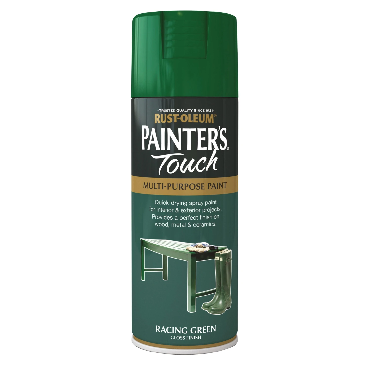 Ideal for multi surface, this Racing green gloss gloss decorative spray paint from the Painter’s touch range by Rust-Oleum has been specially designed to give a stunning finish to around your home. Simply apply and leave for 24 hours to dry – a great way to revamp your home. Covers 2m² per litre on average.
